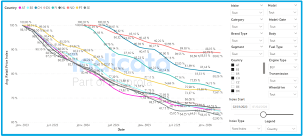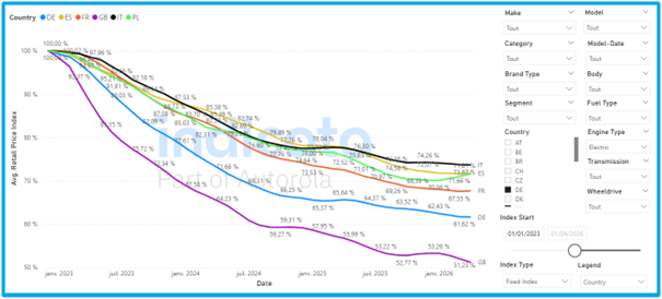 “We are seeing a clear acceleration in used BEV sales, combined with a contraction in stock levels. This is mechanically improving market fluidity,” he continued. “However, this adjustment has not yet translated into any upward movement in prices.”